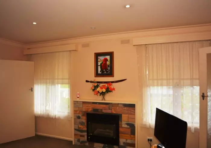 Brick veneer with aluminium windows, a tiled roof and recently carpeted the floor plan includes two double bedrooms both with built-in robes plus a smaller single bedroom, new gas "wood fire look" heater in the lounge room, meals area with great views and a split system reverse cycle air conditioner, plenty of cupboards and an electric stove in the kitchen, shower over the full size bath in the bathroom and a separate shower recess in the laundry, separate toilet and an enclosed back porch and small store room.