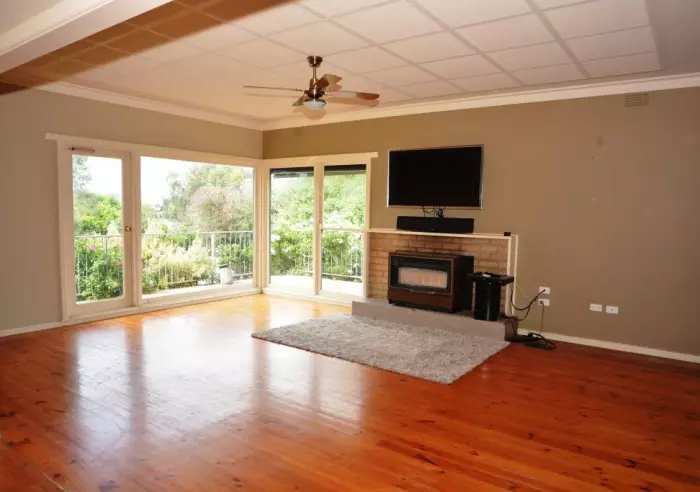 So many homes lack adequate storage space but not this one. All three double bedrooms have built-in robes; there is a huge linen press and many other places for all your belongings. Polished floorboards in the generous gas heated lounge room with the previously mentioned views over the park and town to the mountains, kitchen and family dining space with gas cooking, very handy separate office or hobby room, bath and separate shower recess in the bathroom and a separate toilet.