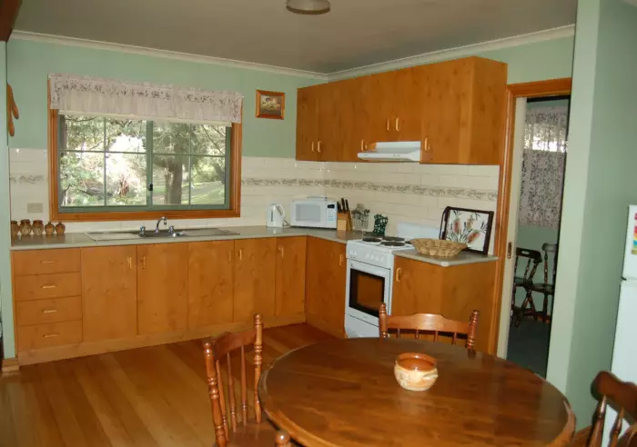 The front verandah is the ideal spot to enjoy the Grampians and leads into the open plan living / kitchen area with cathedral ceilings, wood heating plus a split system. The fully furnished home, has two bedrooms both with BIR's, a spacious bathroom with corner spa and laundry with storage space. The covered rear deck is ready for summer BBQ's.