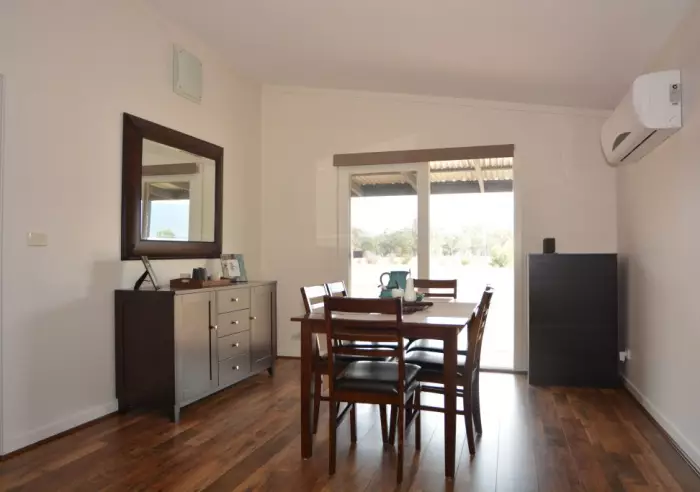 A short drive from the Grampians this interesting and stylish home has the benefits and privacy of life on fifteen acres, a stunning outlook and surrounded by open grassland. An inviting open space includes the relaxing combustion heated lounge, dining area with the Grampians filling the windows and the centrally situated, well equipped modern kitchen opening onto the front and side shady verandahs. Dual reverse cycle split system air conditioners keep this area comfortable all year round. Upstairs is devoted to the main bedroom with a walk-in robe, ensuite with shower, toilet and vanity and one of the two downstairs double bedrooms has a built-in robe. Downstairs the tiled bathroom has a shower over the relaxing full size bath, custom vanity and toilet. The fully fenced block also includes a 22,500 litre rainwater tank and a dam.