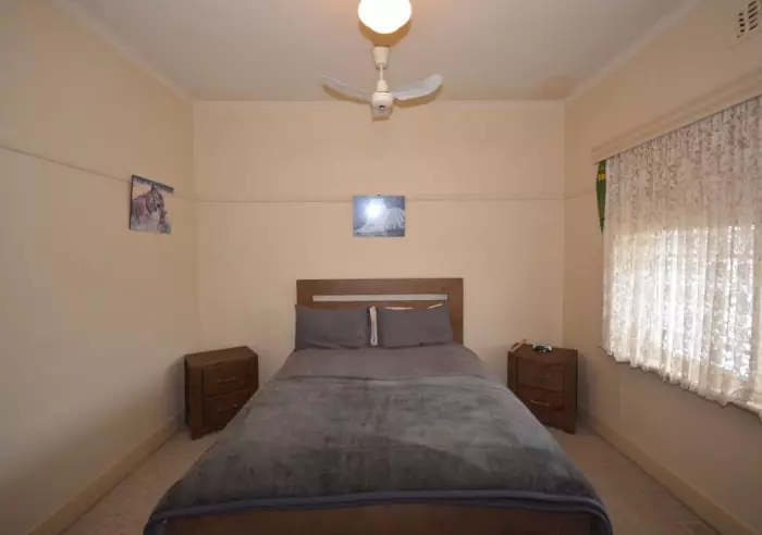 This very good looking home faces north on a well fenced, full size centrally located block with the added benefit of front and rear access. Outside you can enjoy the view from the front verandah or relax under the shade sail in the privacy of the back yard. You certainly won't need to spend much of your precious free time painting the low maintenance vinyl cladding. You'll find full house evaporative air conditioning and gas central heating, gas heated lounge room, dining room off the lounge, gas stove in the kitchen, upgraded bathroom, three bedrooms, hobby room, small family/sunroom and a separate toilet.