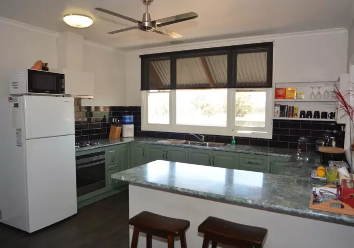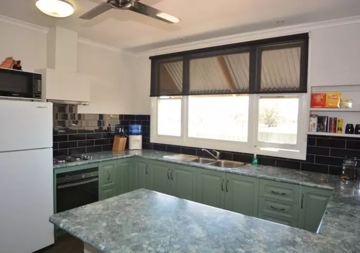 The separate rumpus room with built-in bar is just perfect for a cool drink on a hot day, the garage and workshop on slab has power and a secure roll a door and town water is connected.