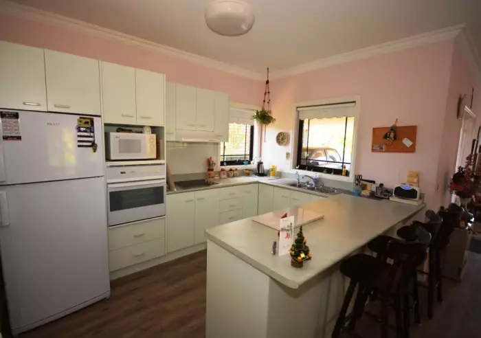 Two toilets, powered security shutters, laundry with storage, single carport, garden shed, private side verandah and watering system for the established front garden.