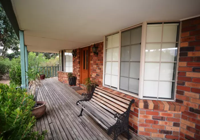 Step inside to be greeted by a sense of space from the cathedral ceilings in the living area.  This room has a cosy wood heater, split system air conditioning, lovely feature bay window, tiled floor and is open to the kitchen.    Here a picture window takes in the mountain views from the well equipped kitchen.  The generous master bedroom also features a lovely bay window, ensuite and WIR.  Bedrooms 2 & 3 are both double size with BIR's.  Family bathroom has the shower and a spa bath, toilet is separate and laundry has good storage cupboard.   Wide return verandahs along the front and side provide afternoon shade and a relaxing outdoor area while providing direct access to the underroof double carport.
