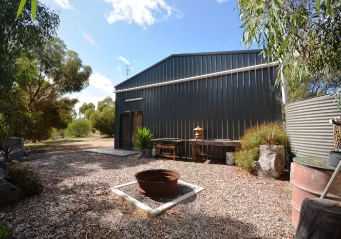 Consisting of a large fifteen metre by eight metre combined colourbond shed/workshop and separate recreation space with power, pure rainwater and a massive combustion heater as well as a double carport and an elderly but clean on site van.