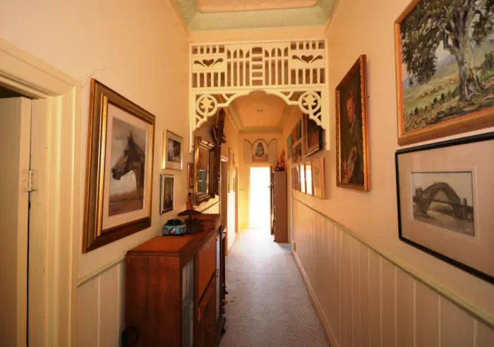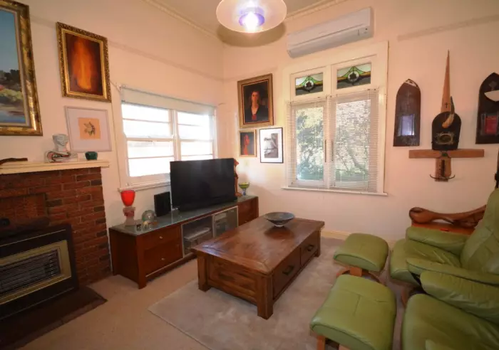 With a list of period features including pressed metal ceilings, leadlight windows, long central hallway and front verandah make this appealing home very inviting. The lounge is open with gas heater and reverse cycle split system, the possibility of have a dining space in this area is also an option. Both bedrooms are doubles in size and have pressed metal ceilings.
