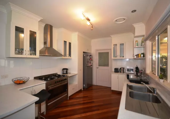Totally modernised with a light, fresh feeling throughout the floorplan boasts a very spacious lounge room with both a winter warming gas log fire and split system air conditioner. The kitchen has an oversized gas stove, plenty of cupboard and bench space, family meals area and polished hardwood floors.