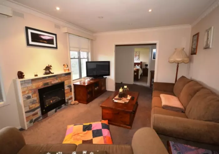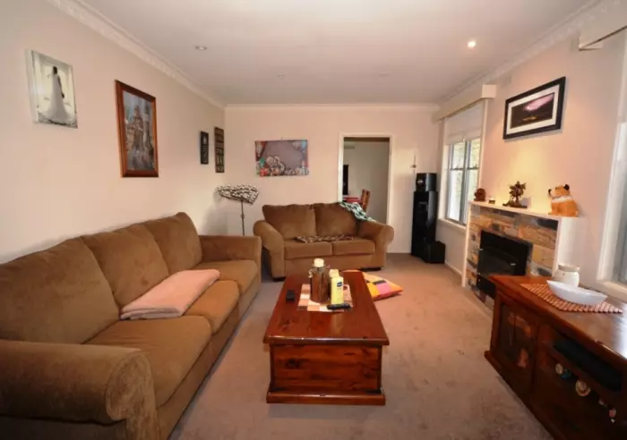 Brick veneer with aluminium windows, a tiled roof & in good condition throughout. The floor plan includes two double bedrooms both with built-in robes plus a smaller single bedroom, gas "wood fire look" heater in the lounge room, meals area with great views and a split system reverse cycle air conditioner, plenty of cupboards and an electric stove in the kitchen, shower over the full size bath in the bathroom and a separate shower recess in the laundry, separate toilet and an enclosed back porch and small store room.