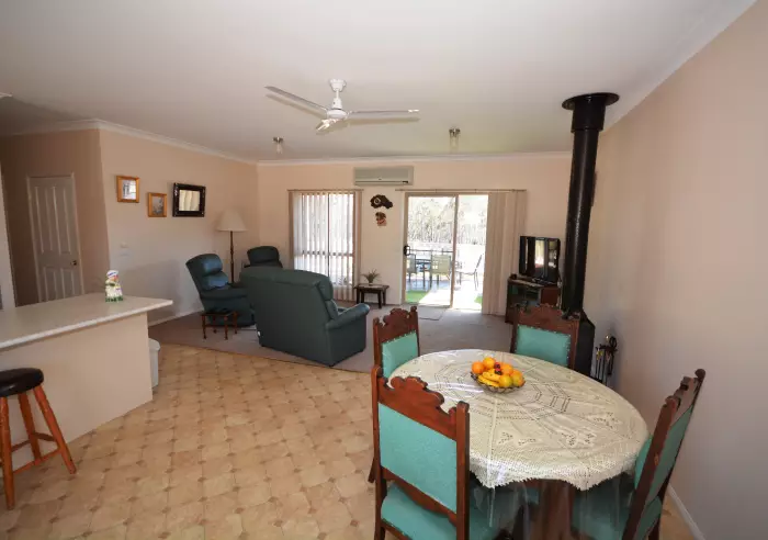 The open plan design includes kitchen with pantry, meals and living with a combustion heater and reverse cycle split system keeping this 5 star insulated home comfortable all year round. All 3 bedrooms include built in storage with the main having a walk in robe. Bathroom has separate shower, bath and vanity. Opening off the living area is a 7m x 4m deck with shade sail making an ideal BBQ/ entertaining area. Other features include a rear verandah and double carport.