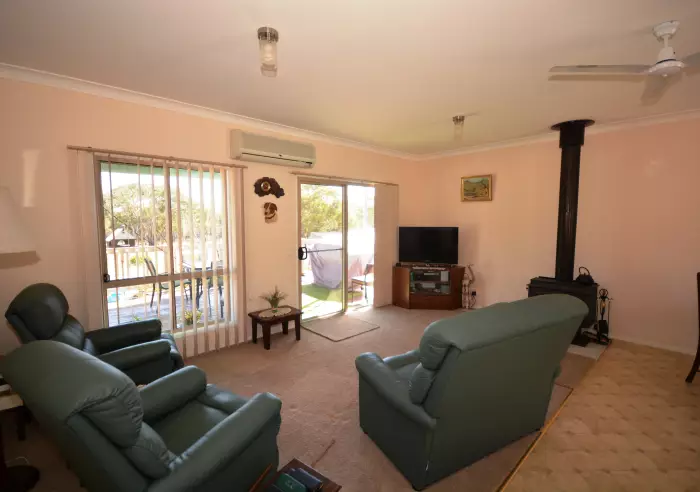 Shedding is more than adequate with a 7m x 6m garage with slab and power, 6m x 8m garage and a large garden shed with slab and power. Also included in the sale are two 20 foot shipping containers, two 40 foot shipping containers and a caravan with kitchen, shower, bedroom and large attached aluminium annexe with laundry. Water has never been an issue with approximately 150,000 litres in total of tank water, feeding the owners thriving orchard and vegetable garden. Keep the electricity bills down with the 3.5kw 16 panel solar system.