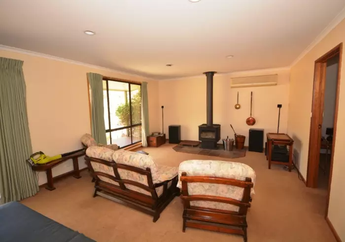 Three double bedrooms all with built-in robes, separate shower recess in the family bathroom, separate toilet, lockable owners cupboard, garden shed/workshop on slab, woodshed and front verandah.