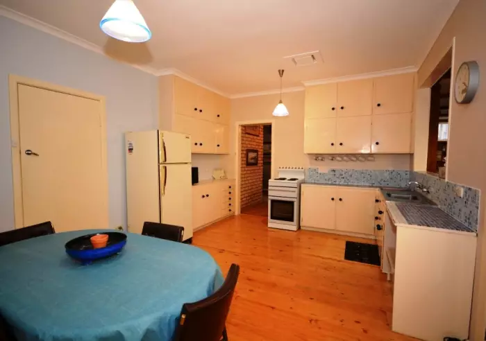 A welcoming home that feels comfortable the moment you enter the front hall. The generous lounge combined with the dining area is warmed by a combustion heater, an adjoining unexpected family room opens directly onto the paved and covered outdoor patio area, the kitchen and casual family meals space has electric cooking, polished floor boards and good cupboard space.