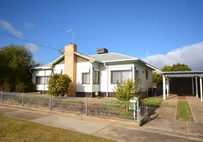 Clad in Colourbond steel with aluminium windows and enjoys an energy saving northerly aspect, the floorplan includes a bright gas heated lounge room, kitchen with dishwasher and electric stove, good cupboard space and a generous family meals area. New floor coverings have just been laid throughout and there are built-in robes in two of the three bedrooms, new window coverings,  two toilets, shower over a hip bath in the freshly painted bathroom, linen press, coat cupboard, full house evaporative air conditioning and an enclosed back porch.