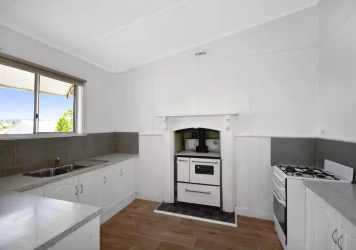 The property has undergone a recent makeover with some painting inside and out but most impressive is the fully renovated bathroom with separate shower and freestanding bath, toilet and vanity. Neat and tidy the kitchen includes good bench space, gas stove, double sink and a spacious meals area with a picturesque view over the town. The lounge has gas heating and reverse cycle split system. Other notable features include the front bull nose verandah with lace fretwork, 12 foot ceilings, stained glass internal door and polished floorboards throughout.