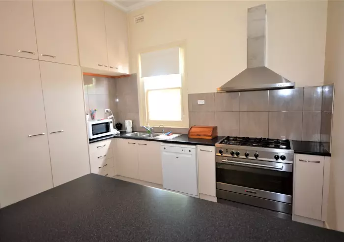 Includes a recently upgraded quality kitchen with five burner 900mm gas stove, breakfast bar, dishwasher, excellent cupboard and bench space. Bedrooms one (with r/c a/con) and two are very spacious doubles while three and four are smaller singles, the gas heated entrance hall with its 3.3 metre ceilings and built-in storage opens into the lounge room also with gas heating and air conditioning. Separate shower recess and bath and a pedestal basin in the bathroom, inside and outside toilets, compact air conditioned and tiled family room plus built in storage in the laundry.