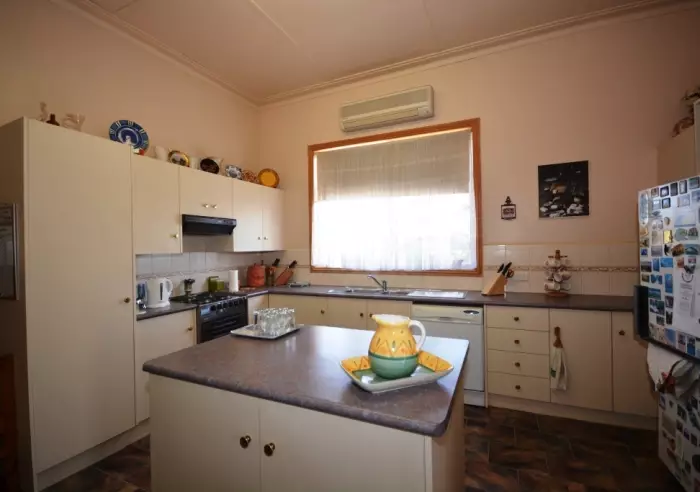 A fabulous and solid family home with the choice of a reverse cycle split system air conditioner or a large and economical combustion heater in the lounge room, well equipped kitchen adjoining the sit down dining area also with r/c air conditioning, bedroom one has an ensuite and a walk-in robe, bedroom two also has a full ensuite and a built-in robe and the big third bedroom has a beautiful timber lined ceiling. The third toilet is in the combination bathroom/laundry and includes a full size bath. The bonus room is a small enclosed back porch ideal as a study or hobby area.