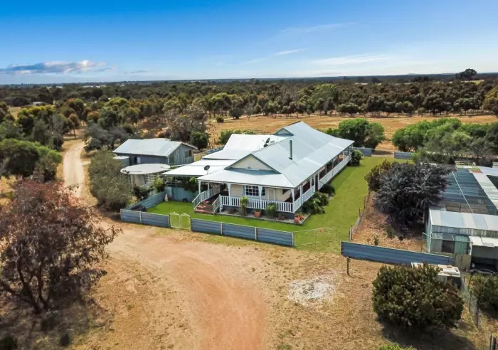 And so many extras – three stock paddocks, house paddock, approx. 500 sugar gums, fruit trees, vegie garden, two dams, 114,000 litres rainwater storage, bore and pump, 1.5 kw solar panels, electric and solar hot water, heat transfer system, canvas sun blinds, fernery, numerous aviaries, disused tennis court, paved and covered bar b que area, nine by six metre shed with power on slab, sundry sheds, double carport and the lifestyle you have been dreaming of.