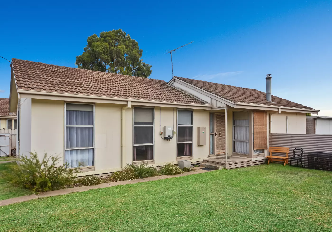This solid three bedroom home has been given a makeover by the current owners creating a neat and tidy property to be enjoyed for years to come. The main living area has combustion heating and also a reverse cycle split system for temperature comfort. A galley style kitchen includes electric stove, good cupboard space and opens to a large meals area, perfect for entertaining. Two of the three bedrooms include built in robes and the bathroom has a separate shower and bath with vanity.