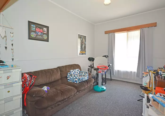 With the low maintenance advantage of colourbond steel cladding and mainly aluminium windows the home is spacious and the block covers 710 square metres. Comprising a generous combined lounge and family room with gas heating, gas cooking in the kitchen and meals area, three carpeted bedrooms, play room, bathroom with shower over the bath and a separate toilet.