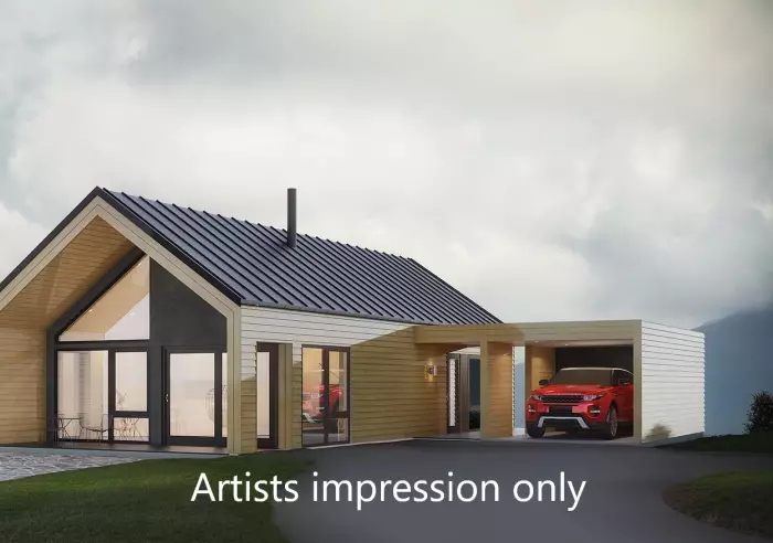 Using long term low maintenance external materials the floor plan’s focus is the beautiful outlook from the lounge, dining, kitchen and upstairs multi-purpose room. The all electric kitchen and dining combines with the reverse cycle air conditioned lounge opening onto a shady front verandah. A solid fuel combustion heater is centrally located to give economical heating to the whole home with the heat rising to the first floor on those crisp winter days. The two downstairs bedrooms are doubles with an ensuite to the main. Upstairs the multi-purpose room is accessed via the timber staircase and the floor to ceiling windows frame the mountains perfectly.