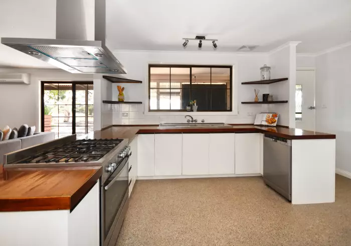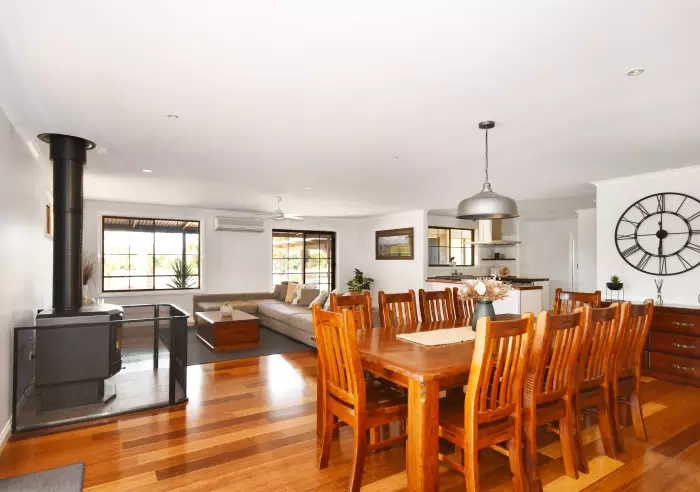 Thoughtfully planned the layout includes a bright and spacious living area with both a split system air conditioner and a home warming combustion heater, kitchen with a combination gas and electric stove, dishwasher, plenty of cupboards and bench space and a trip and money saving walk-in pantry, four double bedrooms, two with built-in robes and an air conditioner in the main, delightful tiled bathroom with an open shower and relaxing bath, two toilets, mud room and built-in laundry storage.