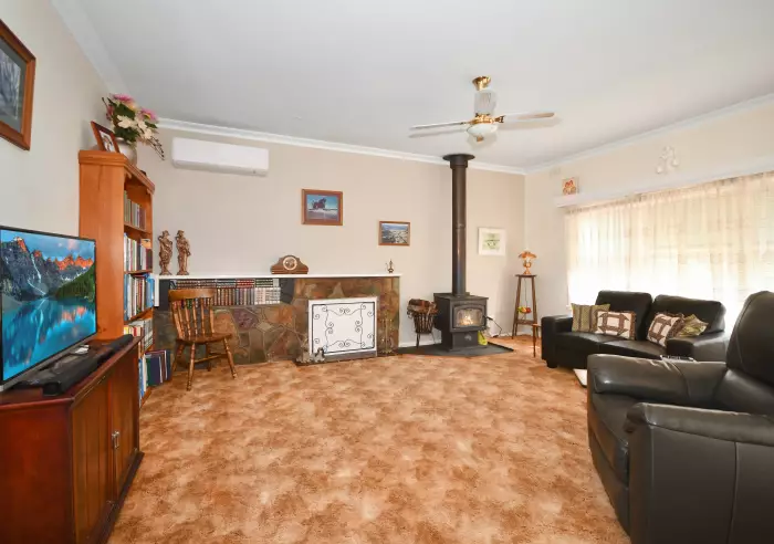 The main air conditioned residence includes a generous combustion heated lounge with a split system reverse cycle air conditioner, kitchen and meals area with gas cooking and plenty of cupboard space, sunroom, separate shower recess, full bath and tastic in the bathroom, two toilets, four double bedrooms all with built-in robes and a double carport.