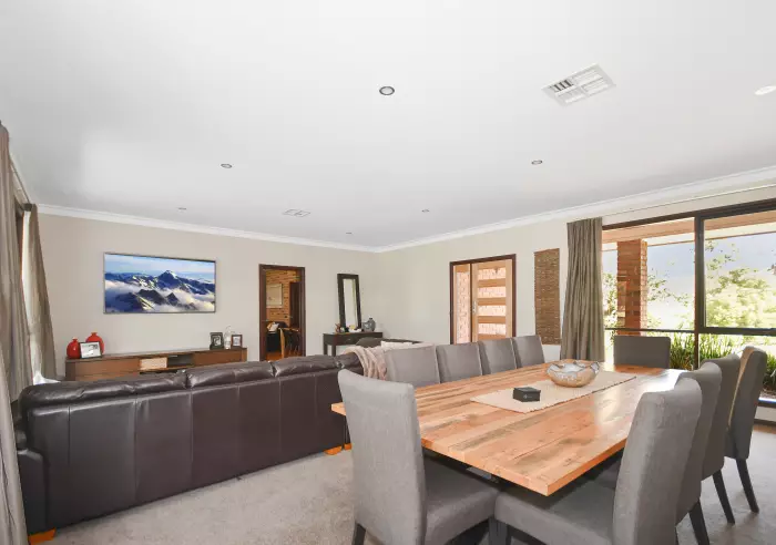 The more than generous and very impressive lounge and dining space enjoys natural light and property views, a crackling open fire for atmosphere and a reverse cycle air conditioner for efficiency.