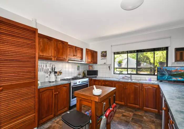 Off street parking for two cars and a small workshop and garden shed complete the improvements on this mid-sized block with established gardens.