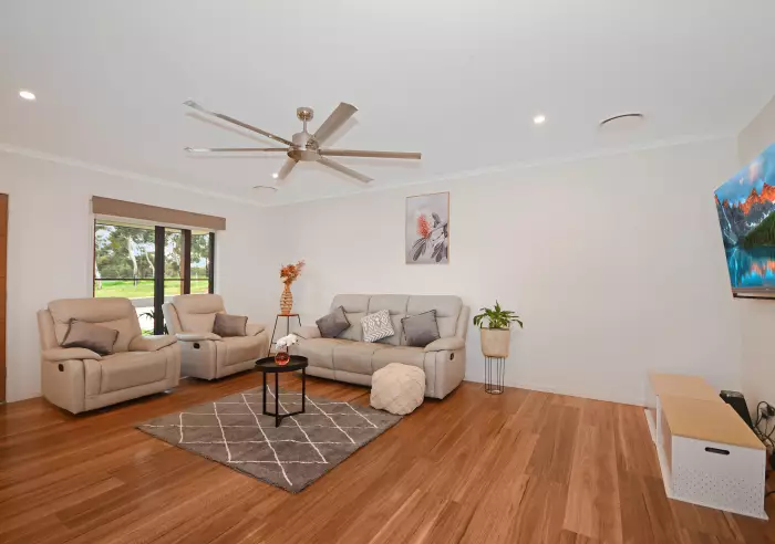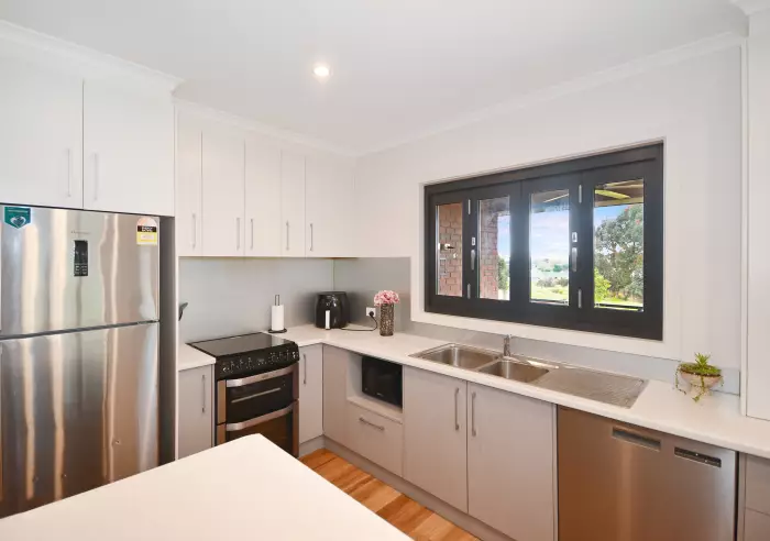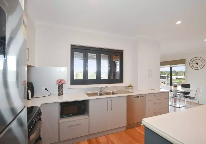 Thoughtfully planned easy living featuring a well-equipped, centrally positioned kitchen with a clever servery to the private deck with views, pleasant outlook from the dining area, generous and comfortable lounge with an impressive ceiling fan and a discrete computer nook.