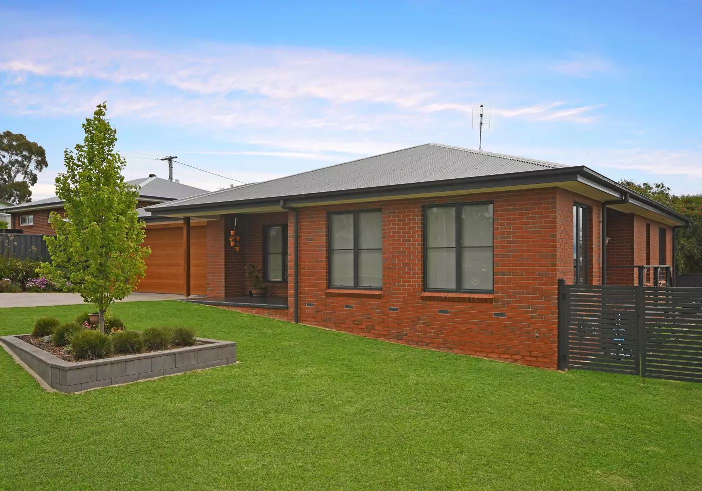 Great storage in the laundry, two toilets, automatic in ground watering system, garden shed and substantial double under roof garage with automatic panel lift door.