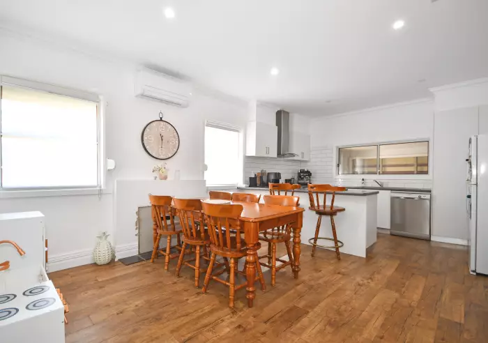 The very spacious open plan family, meals area has a split system. A modern kitchen with electric oven, gas hotplates, dishwasher and good cupboard and bench space. Away from the busy family area the generous lounge room is the perfect place to sit and relax.