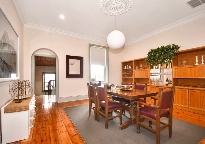 Architect designed by George Inskip and built in 1876 for local gold mine owner and merchant Duncan McKellar the very comfortable upstairs residence with beautiful views includes three bedrooms all with built-in robes, generous lounge and separate dining room, well equipped modern kitchen, bathroom and laundry. Also on the first floor is a lovely fourth bedroom with a retreat along with an unrenovated bathroom and toilet (one of the three toilets) that adds to the appeal and potential.
