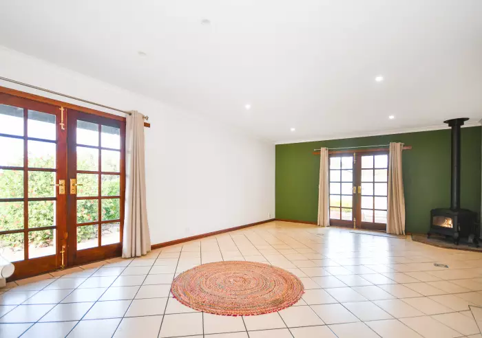 The layout includes a well equipped kitchen with gas and electric cooking, range hood, dishwasher, pantry, breakfast bar and lovely views, very generous tiled family area with a winter warming combustion heater opens to the private side and rear verandahs. Large ten by four and a half metre lounge room with excellent natural light, four bedrooms, three with built-in robes while the main features a tiled ensuite and a walk-in robe.