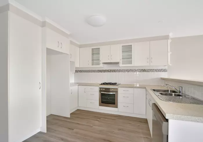 Bright and spacious the lounge room with fitted cabinets has direct access to a secure under roof single garage while the second living and casual dining space opens to a rear deck ideal for relaxing with a morning coffee. Separating these two areas is a lovely gas and electric kitchen with excellent cupboard and bench space a dishwasher and a breakfast bar.