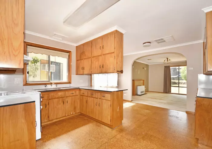 The home has an open living floor plan with a comfortable Rinnai gas heated lounge, the morning sun in the family meals area and the kitchen with breakfast bar, electric cooking and good cupboard/bench space.