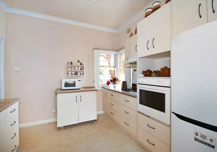 The bathroom and laundry are combined with a separate shower, full bath, tastic and toilet plus a shady wide rear verandah, front hall, linen press and built-in storage and that’s just the inside.