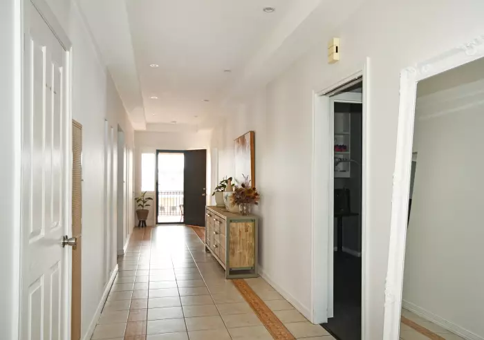 You will also find plenty of space in the striking family bathroom with a double vanity, relaxing full bath and a separate shower recess. Extra storage is built-in in the laundry and the large linen press.
