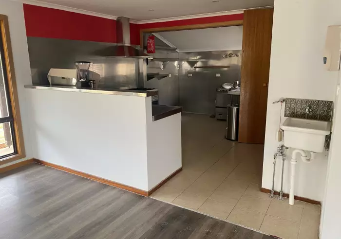 The bright cafe has been recently renovated and includes a spacious freshly painted dining area with split system heating and cooling and vinyl plank flooring opening to the commercial kitchen fitted with 900mm wide stove, rangehood, double bowl sink plus a hands-free sink, preparation bench and aluminium splashbacks.  A new toilet with hand-basin adjoins the cafe plus there is a shared disabled toilet.  A caretakers bed-sit is attached, with bathroom and laundry facilities.