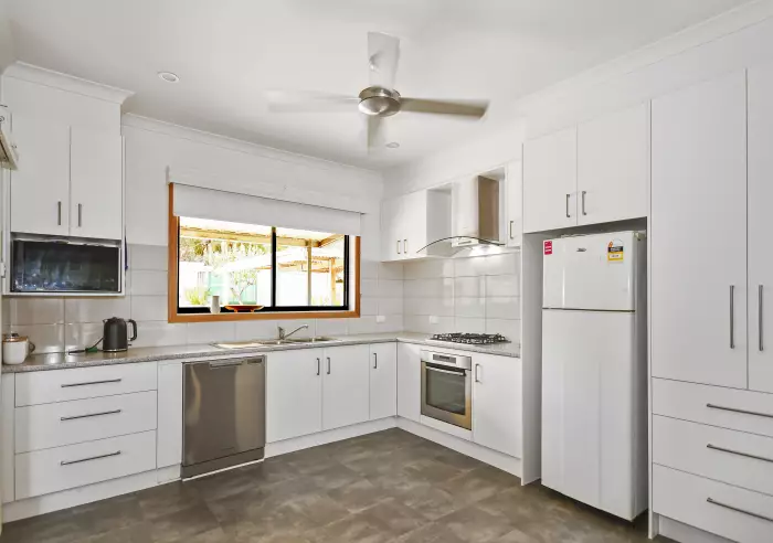 Includes two double bedrooms both with built in robes and overhead fans, mountain views from the generous lounge room with gas heating and reverse cycle air conditioning. Gas and electric cooking, dishwasher and excellent cupboard space in the recently remodelled kitchen/meals area, separate shower recess and tastic in the renovated bathroom plus built in storage in the laundry.