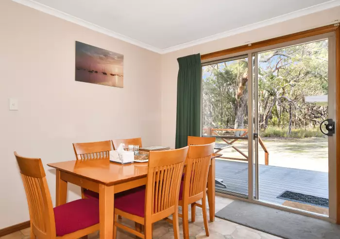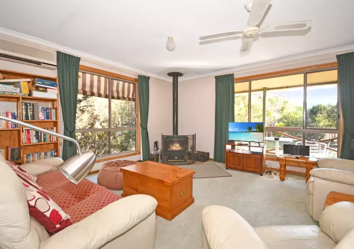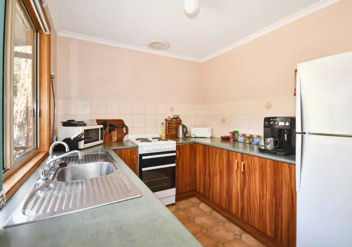Flooded with natural light the lounge room has both a convenient split system air conditioning and a house warming combustion heater with plenty of wood on site. The family meals space and all electric kitchen lead directly to the wonderful outdoor deck perfect for bar b ques and get togethers.