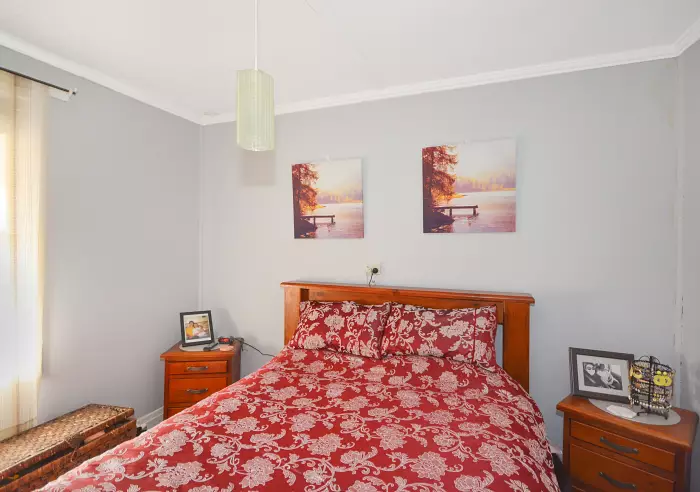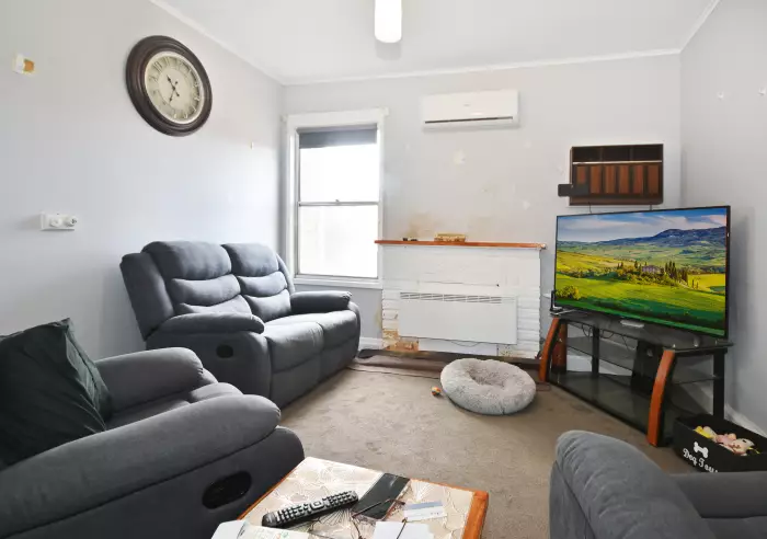 It’s an elderly, brick clad comfortable miner’s cottage with a well-cared for garden. The floorplan includes three carpeted double bedrooms, one with built-in storage, carpeted lounge with a reverse cycle split system air conditioner and electric panel heater, six by two metre all electric kitchen and dining area, separate shower and toilet in the bathroom.