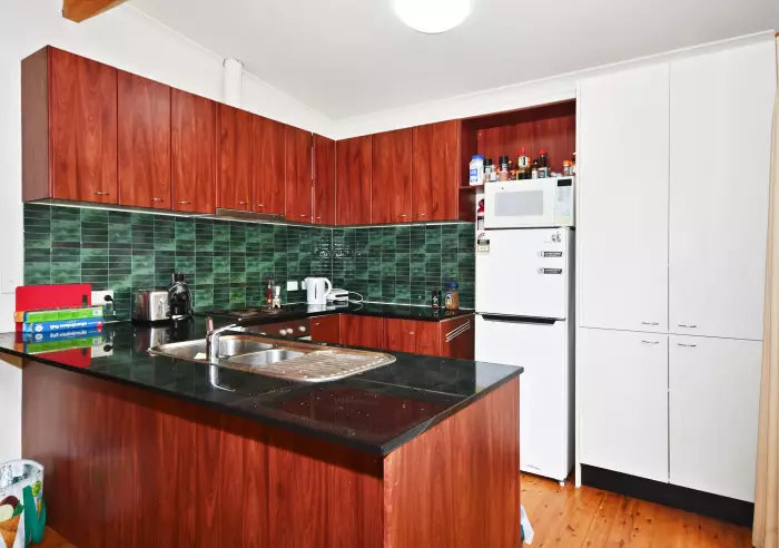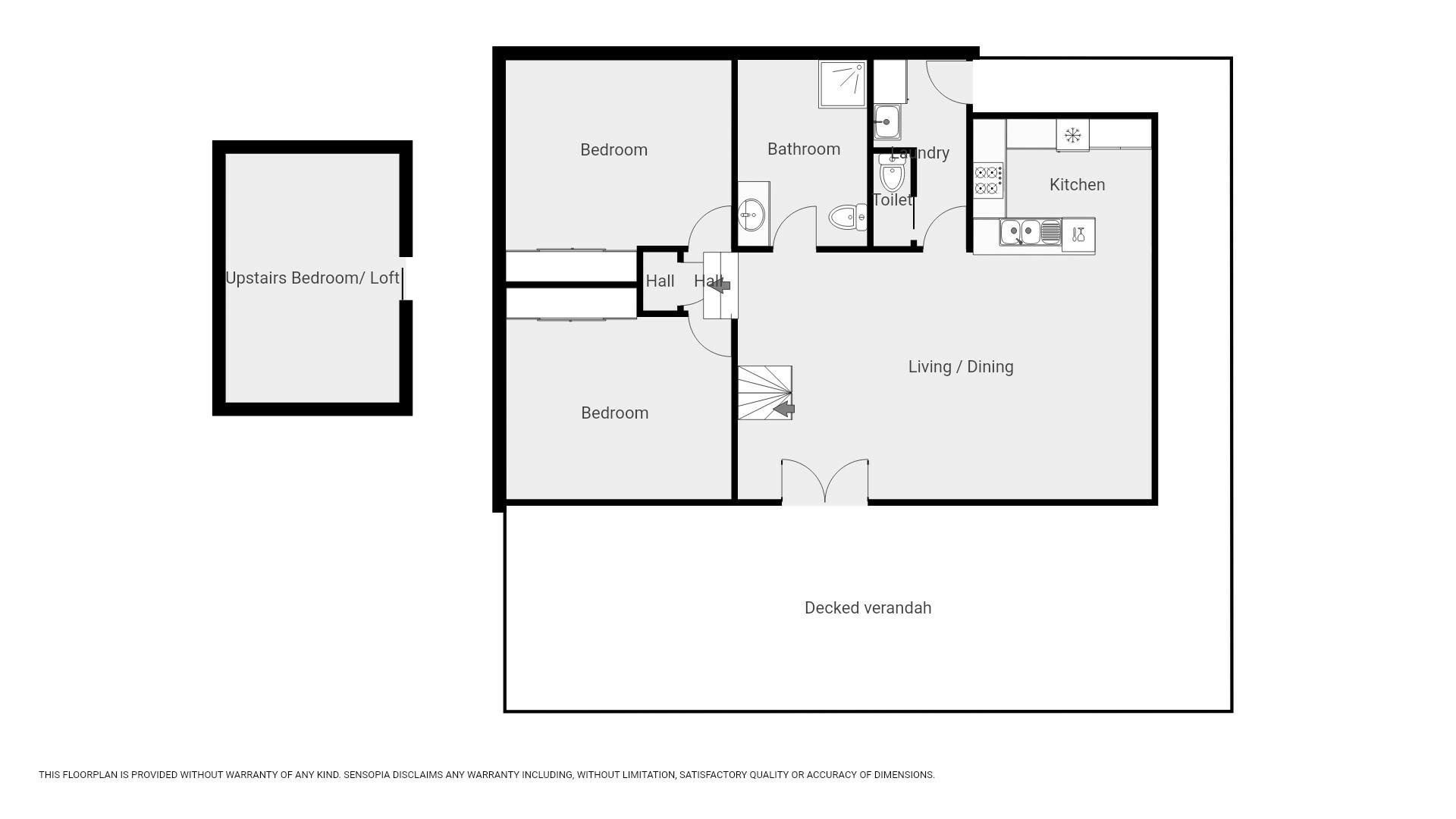 There are three spacious bedrooms — two on the main level with built-in storage and a loft-style third bedroom or kids’ retreat upstairs. The home also includes a well-appointed bathroom, separate toilet and laundry.