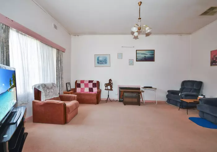 This older three-bedroom weatherboard home offers plenty of space and versatility. It features two living areas, one with gas heating and full-house evaporative cooling for year-round comfort.