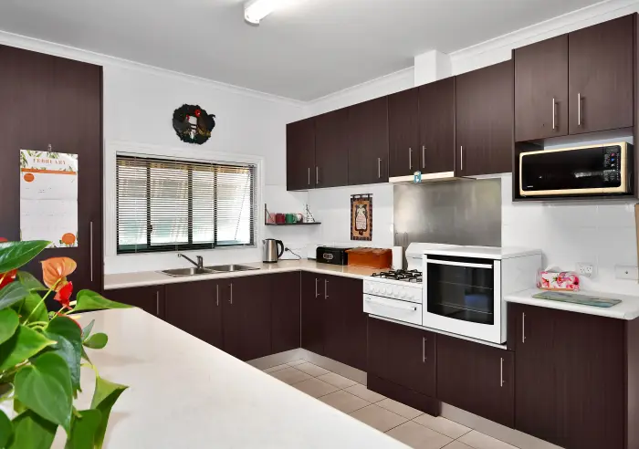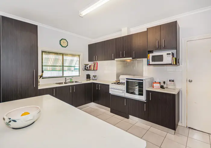 A big reverse cycle split system heats and cools the living areas plus you have the option of new gas heating if required. The family dining space adjoins the kitchen and also opens onto a private alfresco six by five meter entertaining deck with northerly views. Plenty of cupboard and bench space in the remodeled kitchen and the gas side by side stove is a real back saver.
