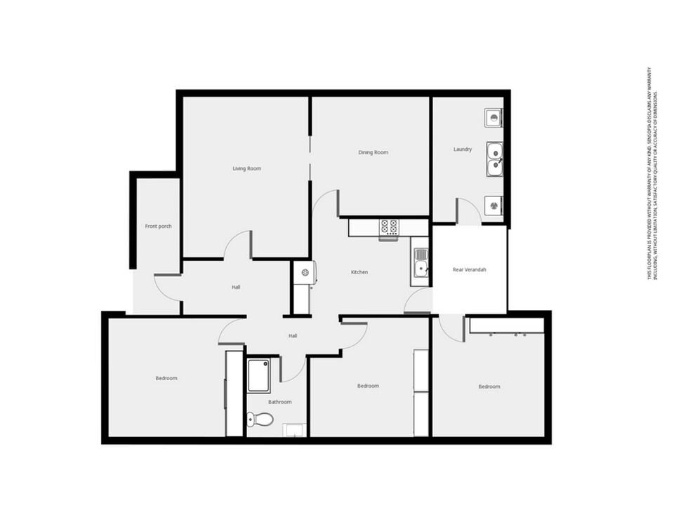 The home offers generous room sizes, high ceilings and decorative plasterwork throughout. The layout includes a separate dining or family room off the kitchen with gas heating, a spacious lounge room with gas heating, and three double bedrooms, with the third accessed from the rear porch. There is a central hallway, a bathroom with separate shower and tastic, and both internal and external toilets.