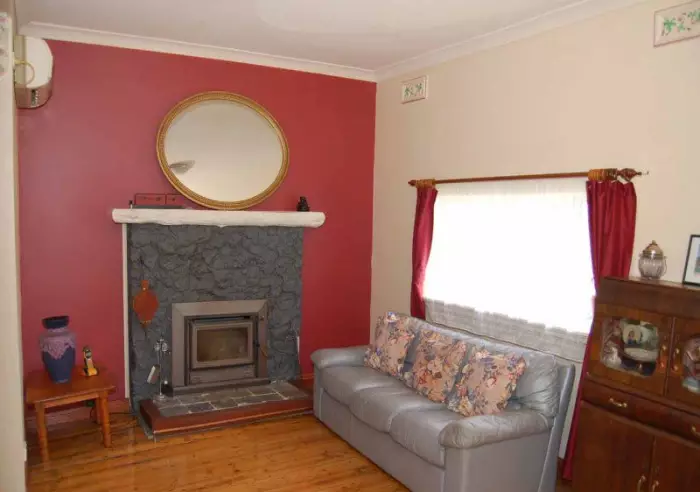 Located on a generous elevated block the floorplan now includes an air conditioned two room lounge with polished floor boards and combustion heating, three double bedrooms, an upstairs studio or forth bedroom, kitchen and dining area with a gas stove, range hood and polished floor boards, bathroom with shower over a full size bath, a tastic and a separate toilet.
