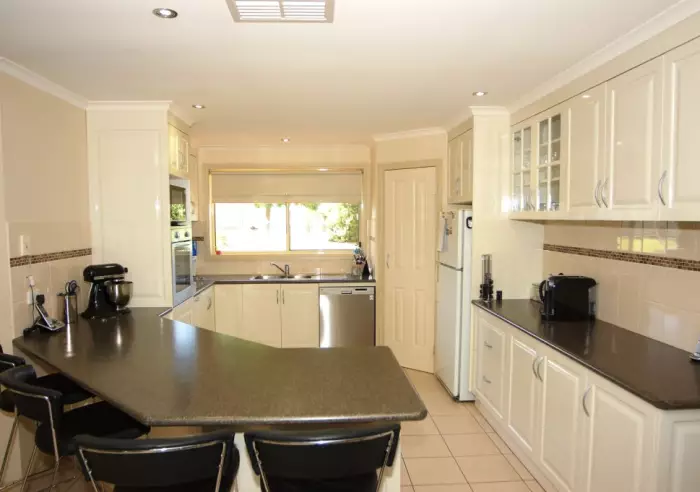 With full house evaporative air conditioning and gas central heating the floor plan incorporates a spacious main bedroom with a double spa bath in the ensuite and walk-in robe, built-in robes in the other three bedrooms, large, bright, fully equipped kitchen with great cupboard and bench space, tiled family room opening directly to the paved and covered outdoor entertaining area, choice of meal time at the breakfast bar, alfresco or in the dining area, separate formal lounge room and a fully tiled family bathroom.