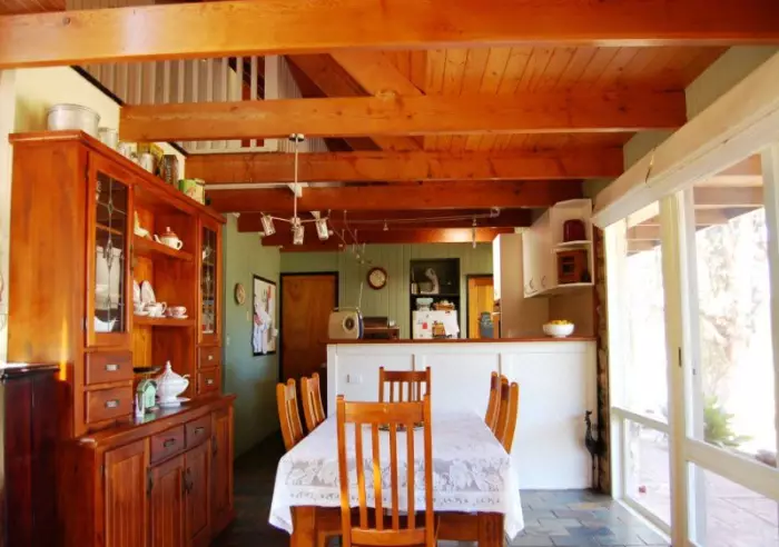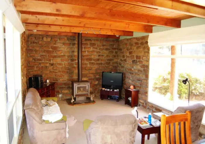 The recently re-painted home is made from sandstone and has a large combustion heated lounge, slate tiled family meals area and a well equipped kitchen with walk-in pantry. The ground floor incorporates open plan living and has large windows to take in the views of the acreage. Both bedrooms have built-in-robes and are within easy access to the main bathroom which includes a spa bath, separate shower, vanity and tastic.