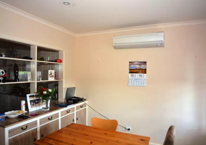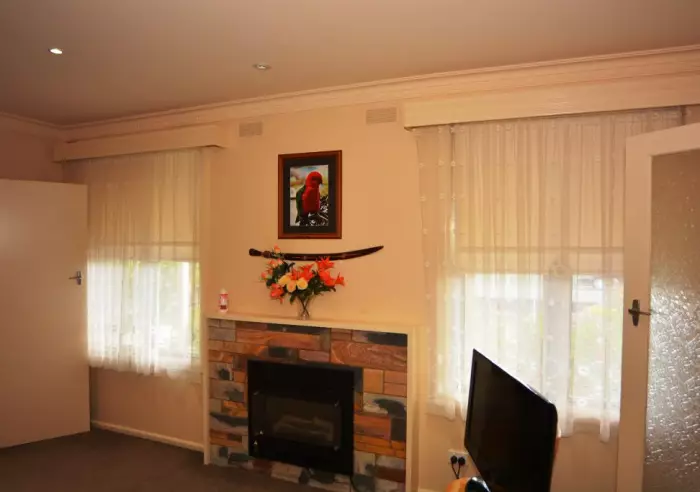 Brick veneer with aluminium windows, a tiled roof and recently carpeted the floor plan includes two double bedrooms both with built-in robes plus a smaller single bedroom, new gas “wood fire look” heater in the lounge room, meals area with great views and a split system reverse cycle air conditioner, plenty of cupboards and an electric stove in the kitchen, shower over the full size bath in the bathroom and a separate shower recess in the laundry, separate toilet and an enclosed back porch and small store room.