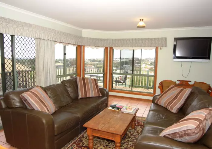 Built in 2001 on a block that takes full advantage of the beautiful views over the town to the mountains available from the rear of the home the well thought out floorplan incorporates a comfortable lounge room well separated from the spacious family room that opens onto the elevated timber deck perfect for bar-b-ques and outdoor entertaining. The upper level also has three bedrooms with an ensuite and walk-in robe to the main and built-in robes to the others, bright and well equipped kitchen, lovely tiled bathroom with full bath and separate shower, full house year round climate control system, double garage with auto door and direct access to the house.